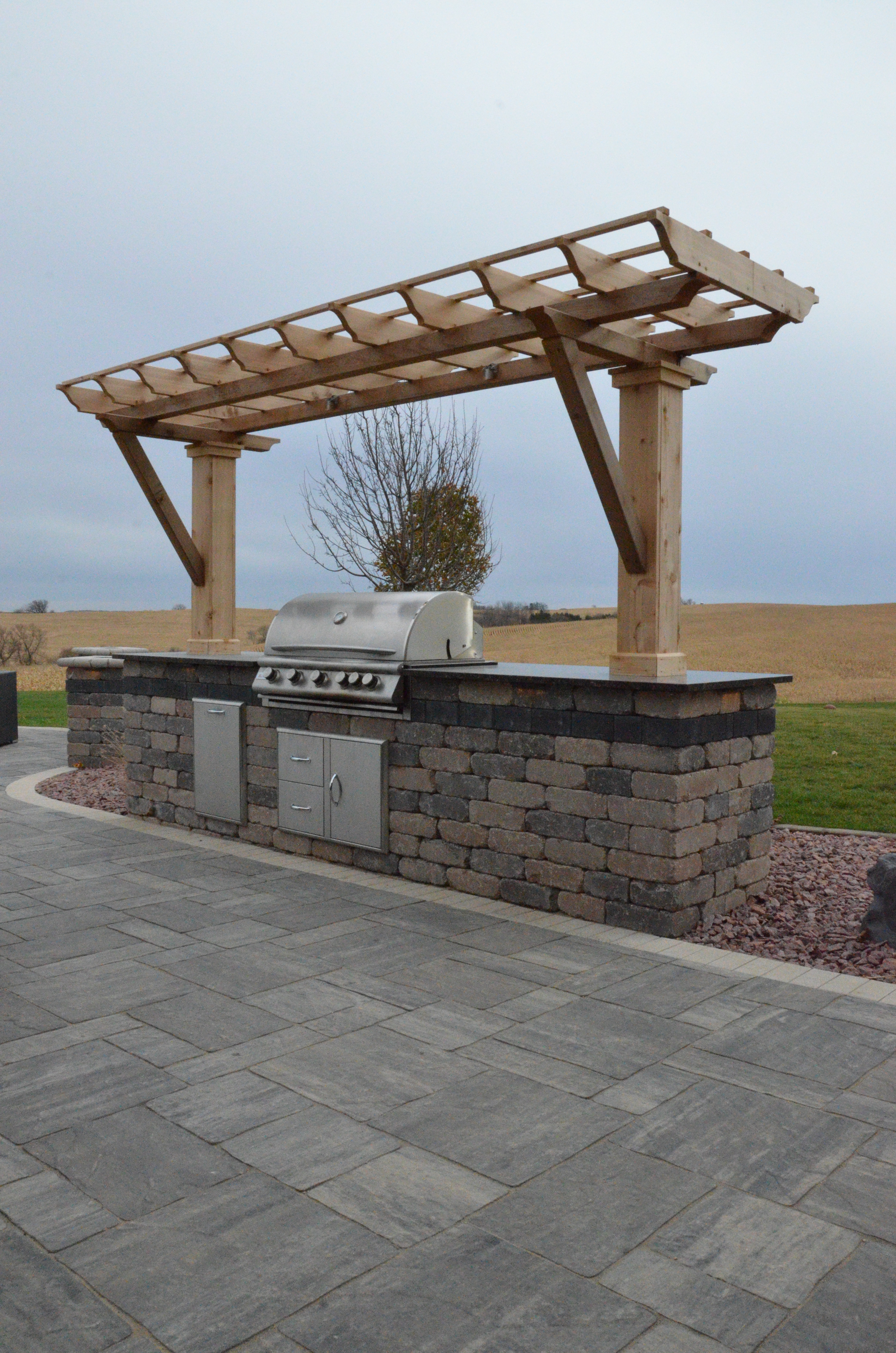 Our crew at Schockemoehl Landscaping works hard to create outdoor spaces that are extensions of our clients’ living areas. For these clients in a rural subdivision, they were looking to create an area where their family could entertain and enjoy the surrounding landscape.